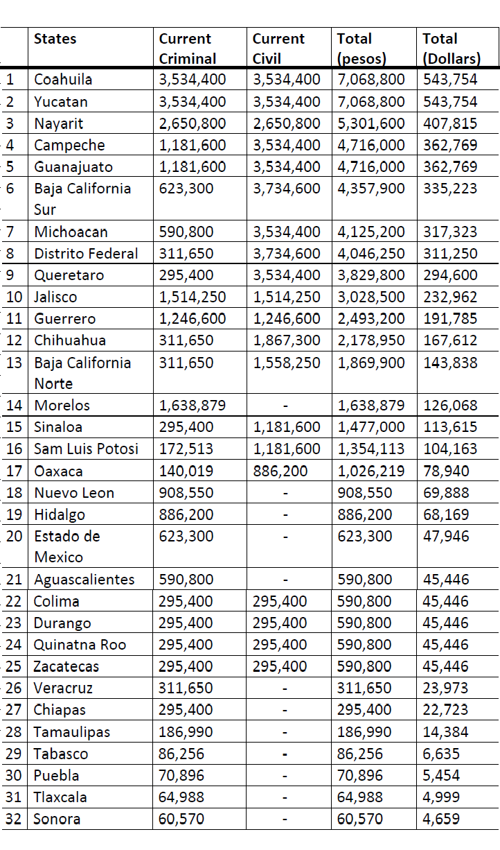 Depending on the location of the accident, this may increase your financial exposure in Mexico to any at-fault auto accident which results in a fatality. Many Mexico states interpret Federal Laws themselves and create their own civil and criminal laws. Attached is a chart that shows the indemnity limits of the different states and how these states will apply them to their particular state.”