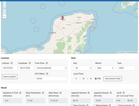 May 20, 2026 12:54 pm Midday sun maximum @ 89.12º Elevation