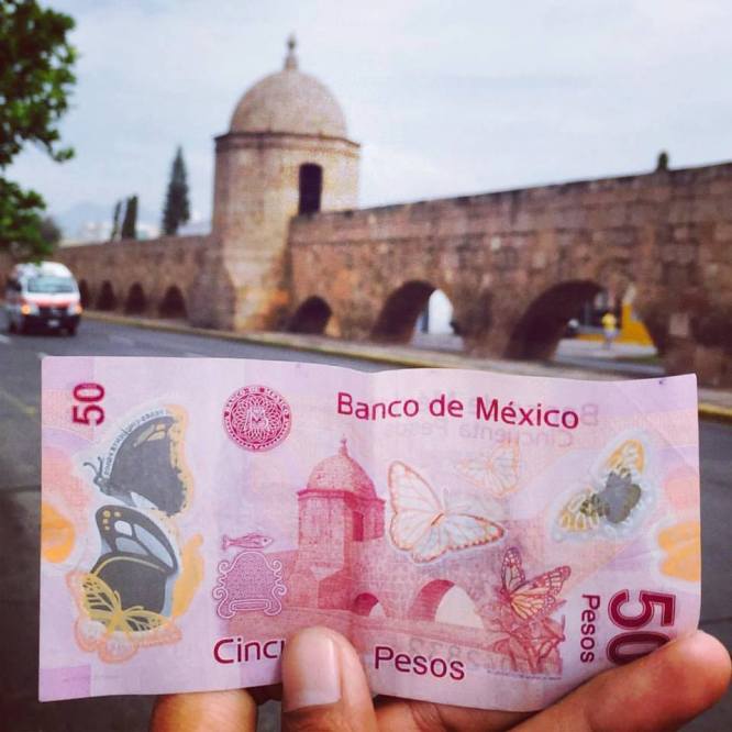 (For the purpose of theme of Mexican historical sites on our currency, we’re showing the old series $500 peso note.**)